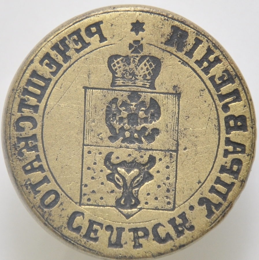 În centrul matricei imaginea unui scut rusesc tăiat încununat cu o coroană închisă, cruciată. În registrul superior imaginea acvilei bicefale încoronate, în cel inferior capul de bour cu coarnele curbate în interior. Între două cercuri liniare de la marginea câmpului sigilar, de jos în sus, de la dreapta la stânga, s-a înscris legenda în limba rusă: „RECHESHTSKAGO SELSK. UPRAVLENIIA” (РЕЧЕШТСКАГО СЕЛЬСК. УПРАВЛЕНИЯ / Primăria satului Recești).