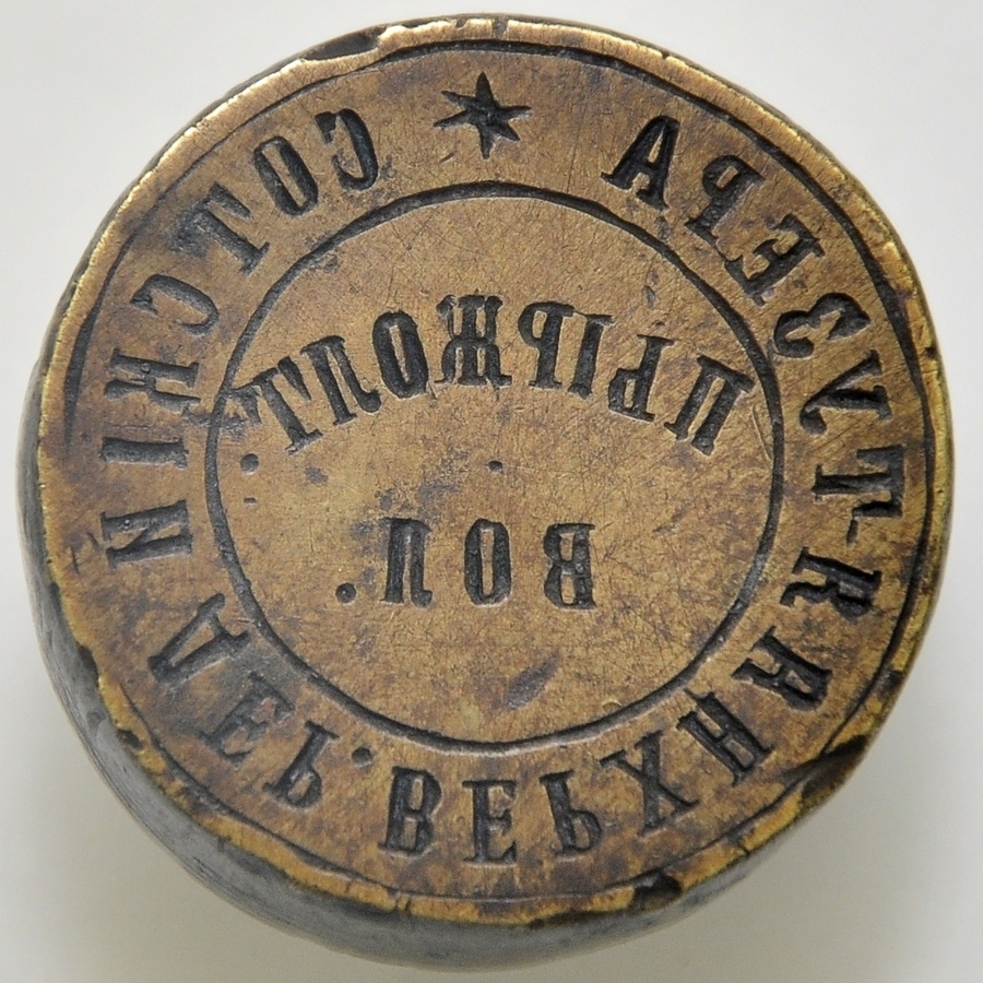 Matrice sigilară rotundă fără emblemă. Semnul de invocație o stea cu șase raze. În exergă, între două cercuri liniare, de sus în jos, de la dreapta la stânga, este înscrisă legenda în limba rusă: „SOTSKIY DER. VERHNIAIA TUZERA” (СОТСКIЙ ДЕР. ВЕРХНЯЯ ТУЗЕРА / Vătășelul comunei Tuzera de Sus). În câmpul sigilar în două rânduri s-a gravat legenda „PYRZHOLT. VOL.” (ПЫРЖОЛТ. ВОЛ. / Plasa Pârjolteni).